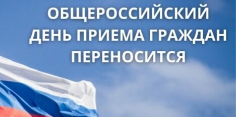 Принимая во внимание осложнение эпидемиологической обстановки, сопряжённой с высоким риском инфицирования COVID-19, на основании письма Управления Президента Российской Федерации по работе с обращениями граждан и организаций от 03.12.2020 года № А26-1941 общероссийский день приема граждан, запланированный к проведению 14 декабря 2020 года, переносится до периода стабилизации эпидемиологической ситуации.